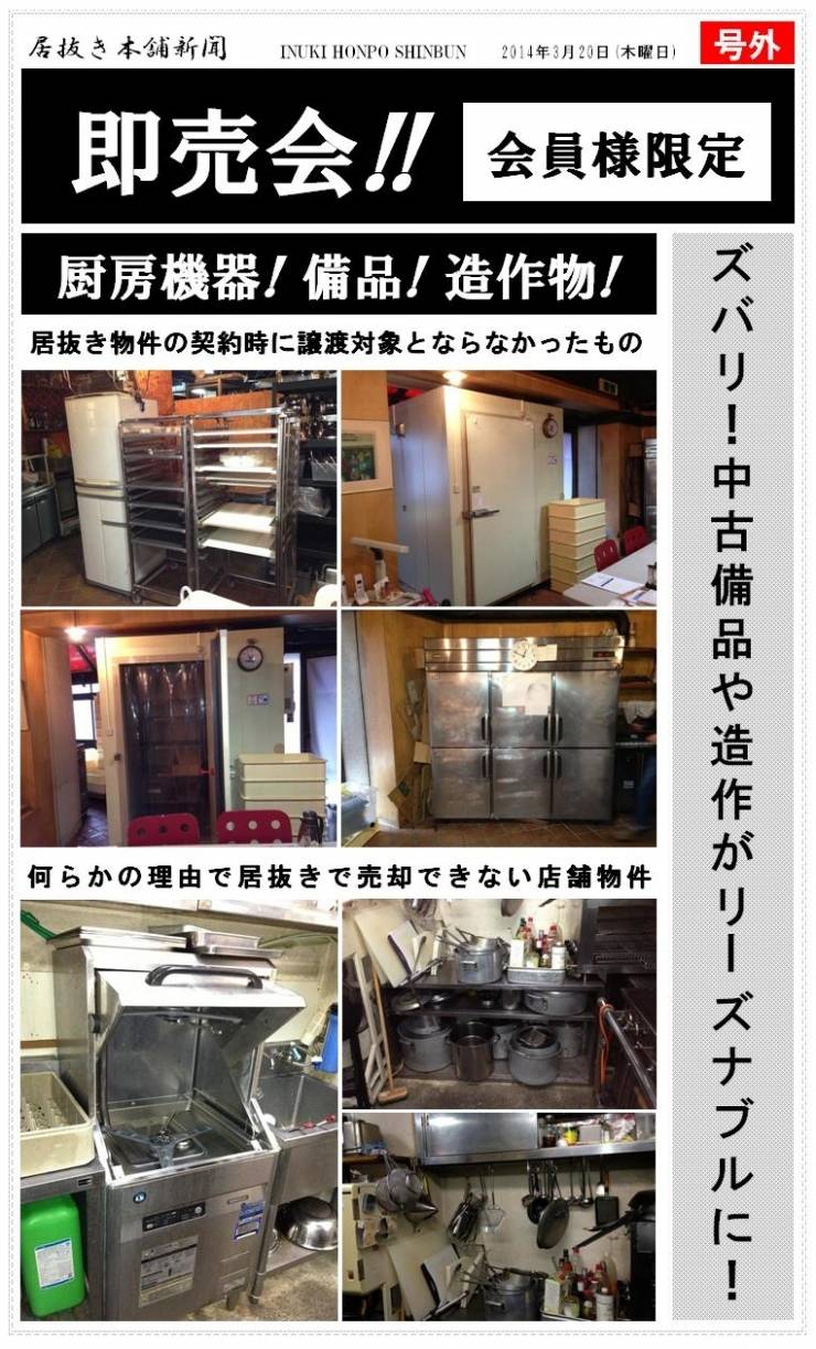 お店の厨房機器、備品、造作を売る!|売却ライブ速報|居抜き売却本舗