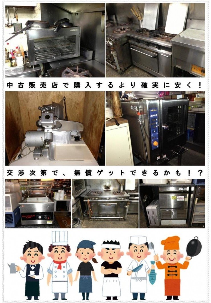 お店の厨房機器、備品、造作を売りませんか!?